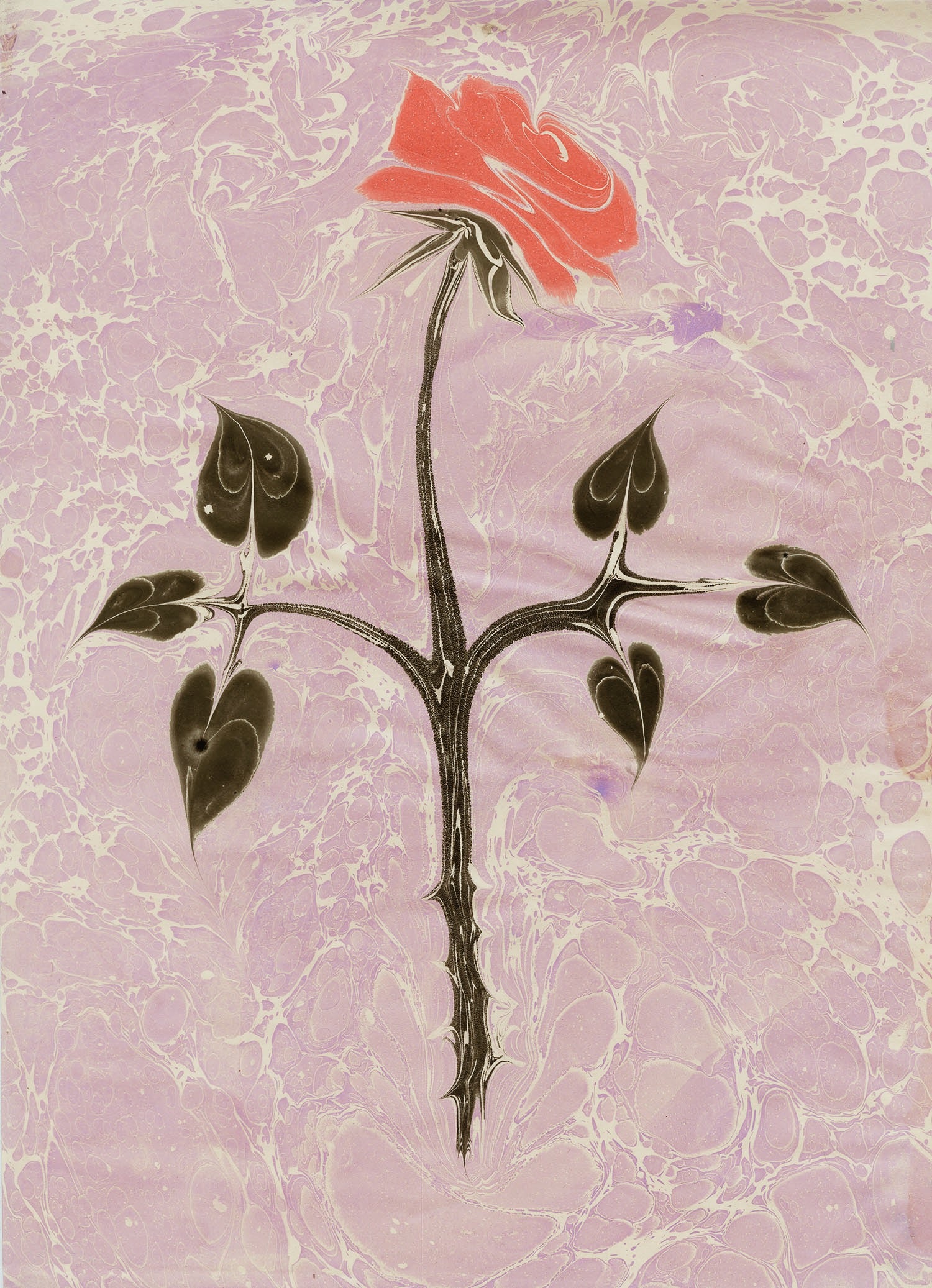 Gouache paint on a lightweight professional ebru pulp paper. (Approx 80 grams)