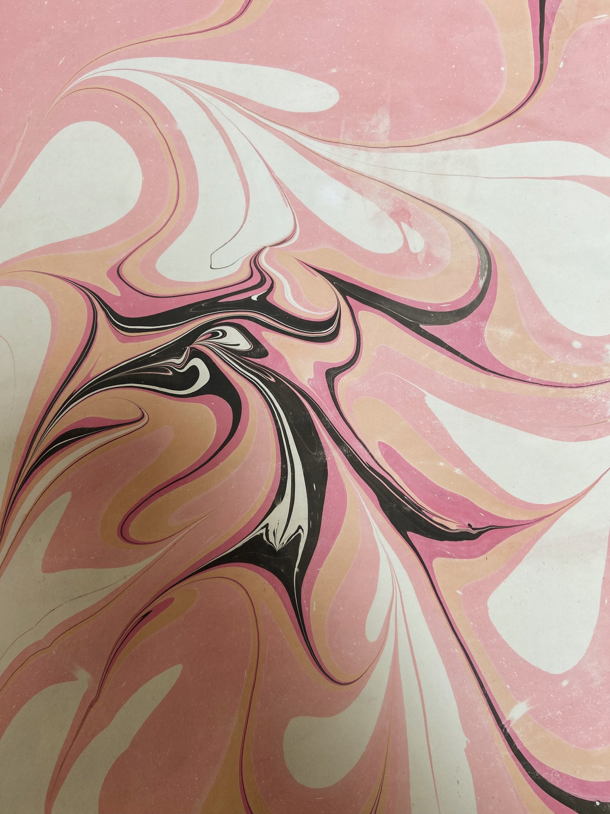 Gouache paint on a lightweight professional ebru pulp paper. (Approx 80 grams)